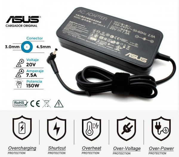A partir de las especificaciones del transformador de portátil ASUS, completa la tabla siguiente.
